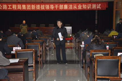 12月2日上午,集團(tuán)公司依據(jù)交通投資集團(tuán)《新提拔領(lǐng)導(dǎo)干部進(jìn)行廉潔從業(yè)知識(shí)測(cè)試規(guī)定》和要求,對(duì) 54名新提拔或輪崗的領(lǐng)導(dǎo)干部進(jìn)行廉潔從業(yè)知識(shí)考試。集團(tuán)公司董事長(zhǎng)劉前進(jìn)、黨委書(shū)記李林、總經(jīng)理魏道平、工會(huì)主席李志強(qiáng)對(duì)考場(chǎng)進(jìn)行巡視,監(jiān)事會(huì)主席、紀(jì)委書(shū)記王璞向參加考試人員強(qiáng)調(diào)本次考試的重要意義及有關(guān)要求。