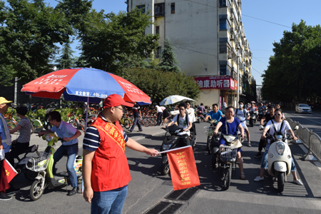 盛夏酷暑,高溫難耐。投資公司、物資公司分別派出2名志愿者冒著炎炎烈日在中原路與大學(xué)路交叉口協(xié)助交警執(zhí)勤。他們肩披“河南省公路工程局集團(tuán)”綬帶,手持“公共文明引導(dǎo)志愿者”小紅旗,幫助執(zhí)勤站崗指揮交通;勸導(dǎo)說服不文明交通現(xiàn)象;幫助詢問路線的行人、司機(jī)。為集團(tuán)精神文明建設(shè),創(chuàng)建省級文明單位付出了汗水和努力。(黨辦、投資公司、物資公司)
