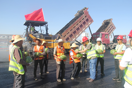 為完成交通建設(shè)局提出提前通車目標任務,烏奎八標全體參建人員大干苦干100天、爭分奪秒搶工期。在炎熱的高溫天氣施工極易發(fā)生中暑,對一線工人造成身體傷害。黨支部組織黨員到標段各個施工點,把西瓜和防暑藥品送到工人手中,在酷熱夏日給一線工人送去清涼和貼心慰問,受到工人們的稱贊和歡迎。 (西北事業(yè)部)
