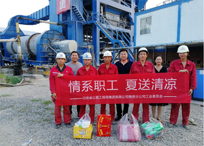 7月23日,物資分公司慰問組來到周南高速瀝青拌合站和施工現(xiàn)場慰問干部職工,提醒要注意酷暑天氣的自我保護,避免高溫時段外出作業(yè),不管室內(nèi)室外都要做好防暑降溫工作,并將降溫飲料、降暑用品、蚊香液、殺蟲劑等防暑用品送到了正奮戰(zhàn)在一線的工人手中,讓干部職工們及時解暑降熱、做好暑天保健。